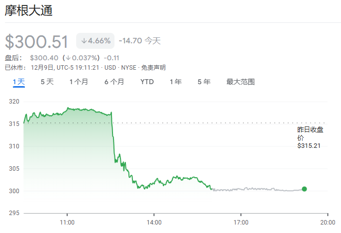 摩根大通是周二 KBW 银行指数中表现最差的股票,收于 300.51 美元。